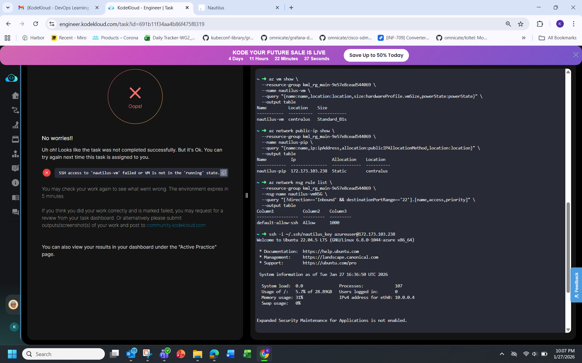 I’m facing an issue while completing an Azure VM creation task in the lab environment and would appreciate guidance or a manual review.