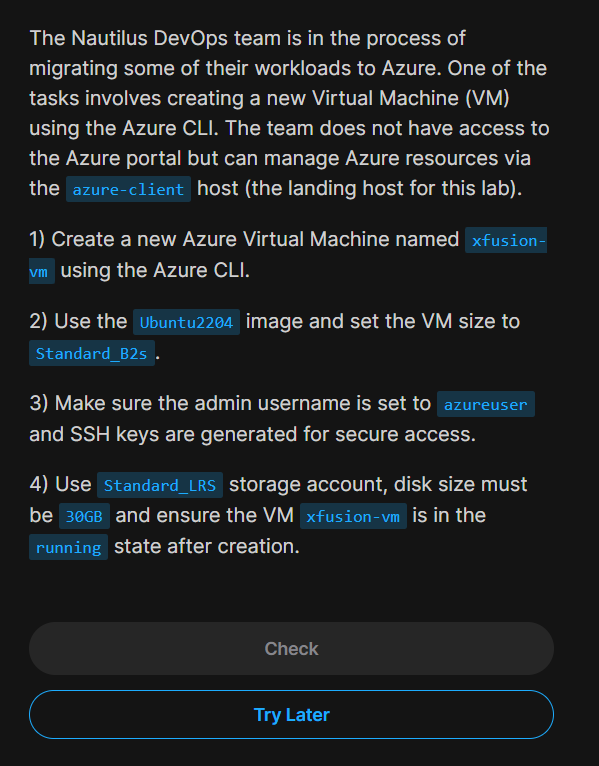 I’m working on the 3rd task of the 100 Days of Cloud (Azure) challenge. For this task, I wasn’t given any credentials to log in to the Azure CLI, so I’m confused about how I’m supposed to create the resources without having access credentials.