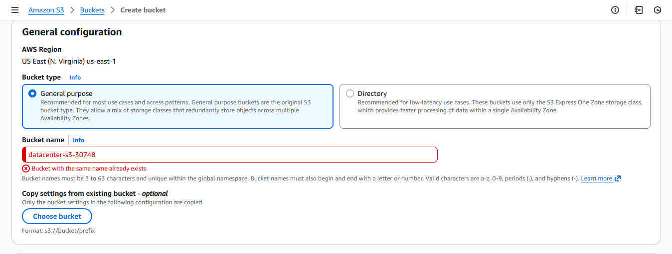 I’m stucked with the day four task of enabling versioning on s3 bucket. I always get this error when i click on create bucket “Bucket with the same name already exists”