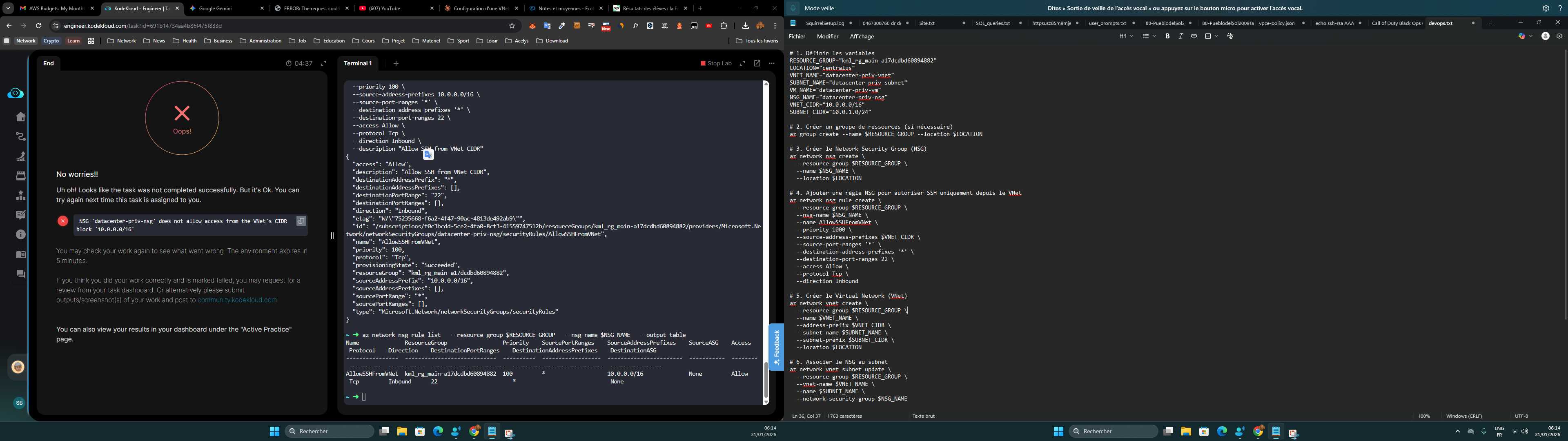 NSG ‘datacenter-priv-nsg’ does not allow access from the VNet’s CIDR block '10.0.0.0/16’