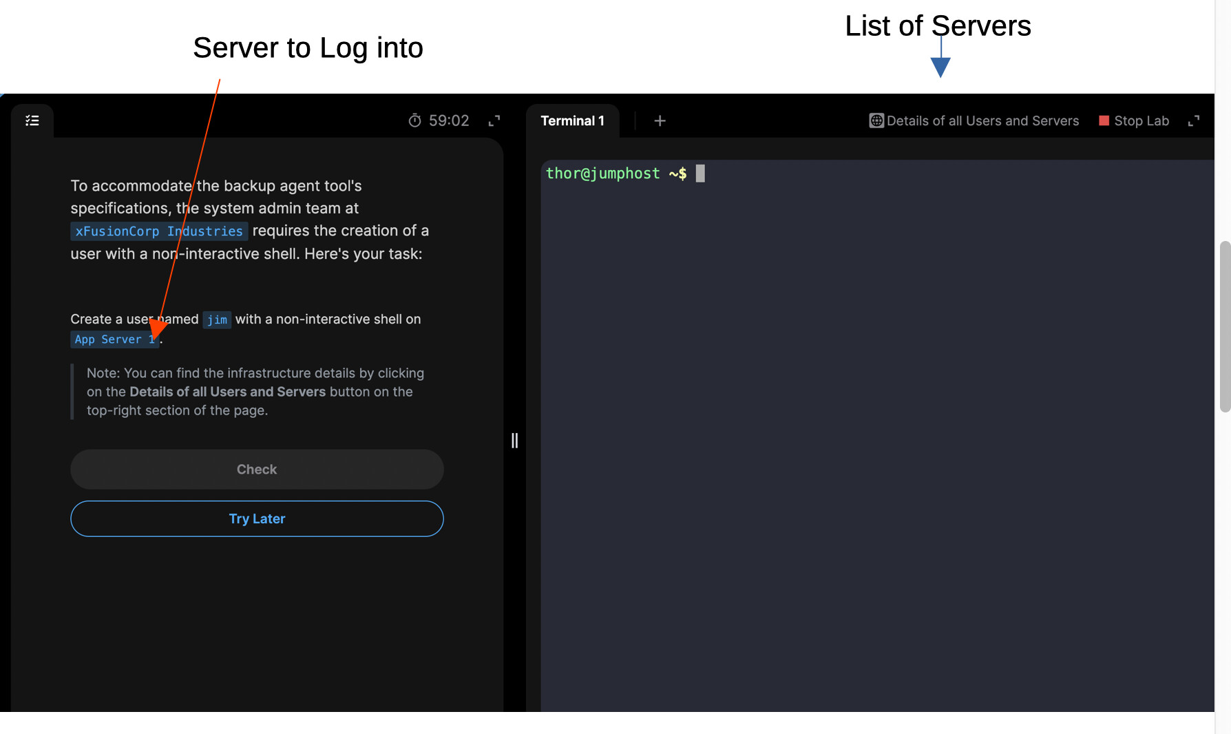 No, you start out on the jump host… If you’re asked to do something on App Host 3, you need to ssh into that host, and do the action there.
