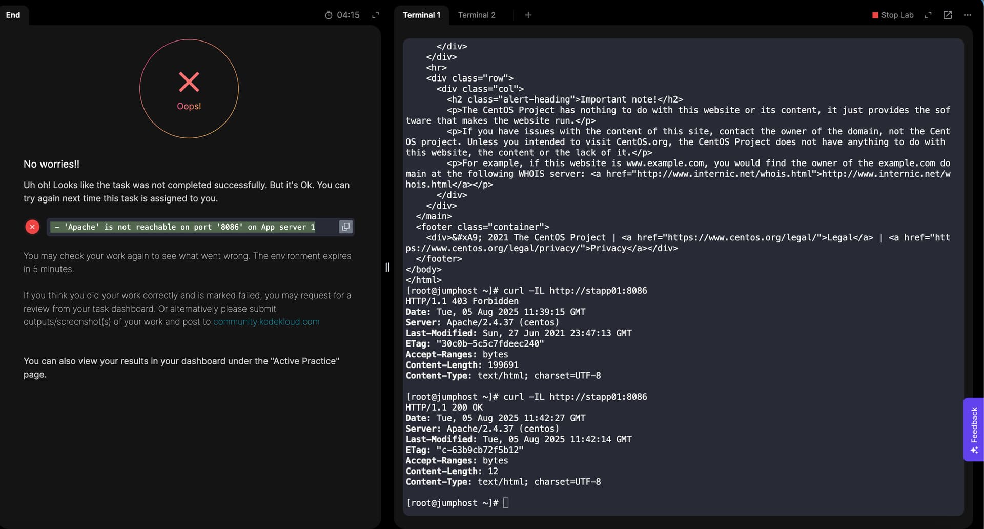 Once fixed, you can test the same using command curl http://stapp01:8086 command from jump host.