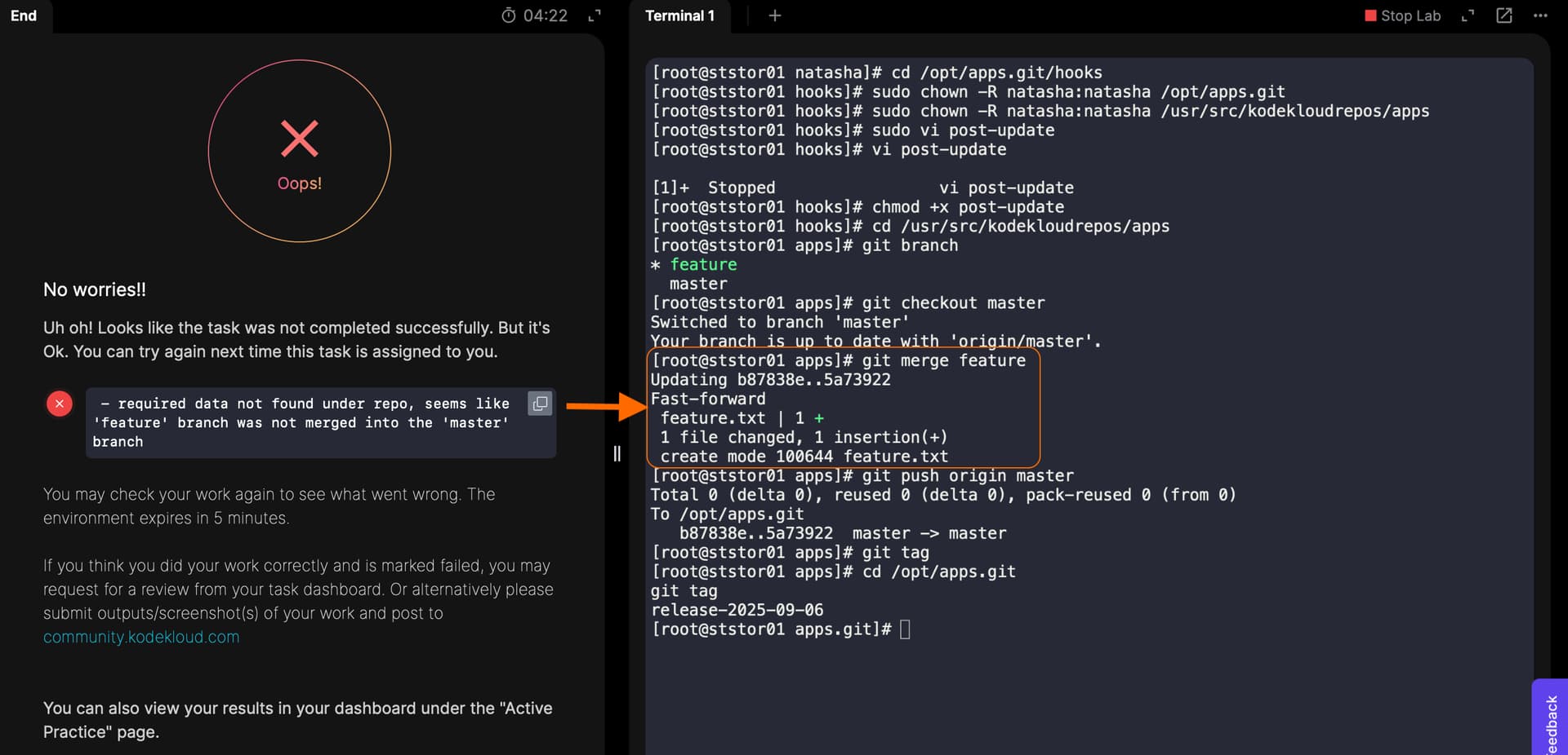 Don’t know. But you keep doing things for the task they’re not asking you to do. Just stick to the task, use sudo to access directories that aren’t accessible to the user you ssh’d in on, and then submit it. That’s what I did and it work. Keep it simple, and it usually works.