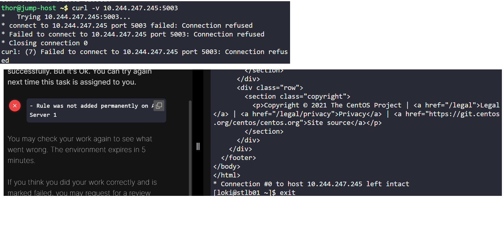 attaching a screenshots of the load balancer server curl command to stapp01 and jumpserver curl command that’s being blocked