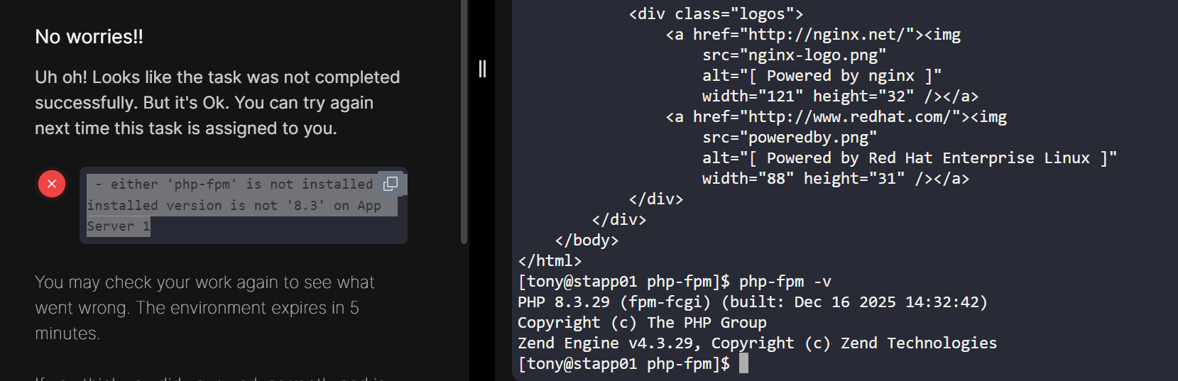 I have installed php 8.3 and curl is also working fine for day 20 lab assignment. But still getting this error