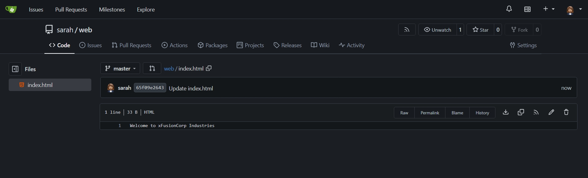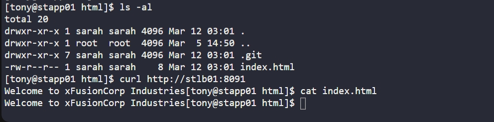 The task specifically asks for the content to be “Welcome to xFusionCorp Industries”.