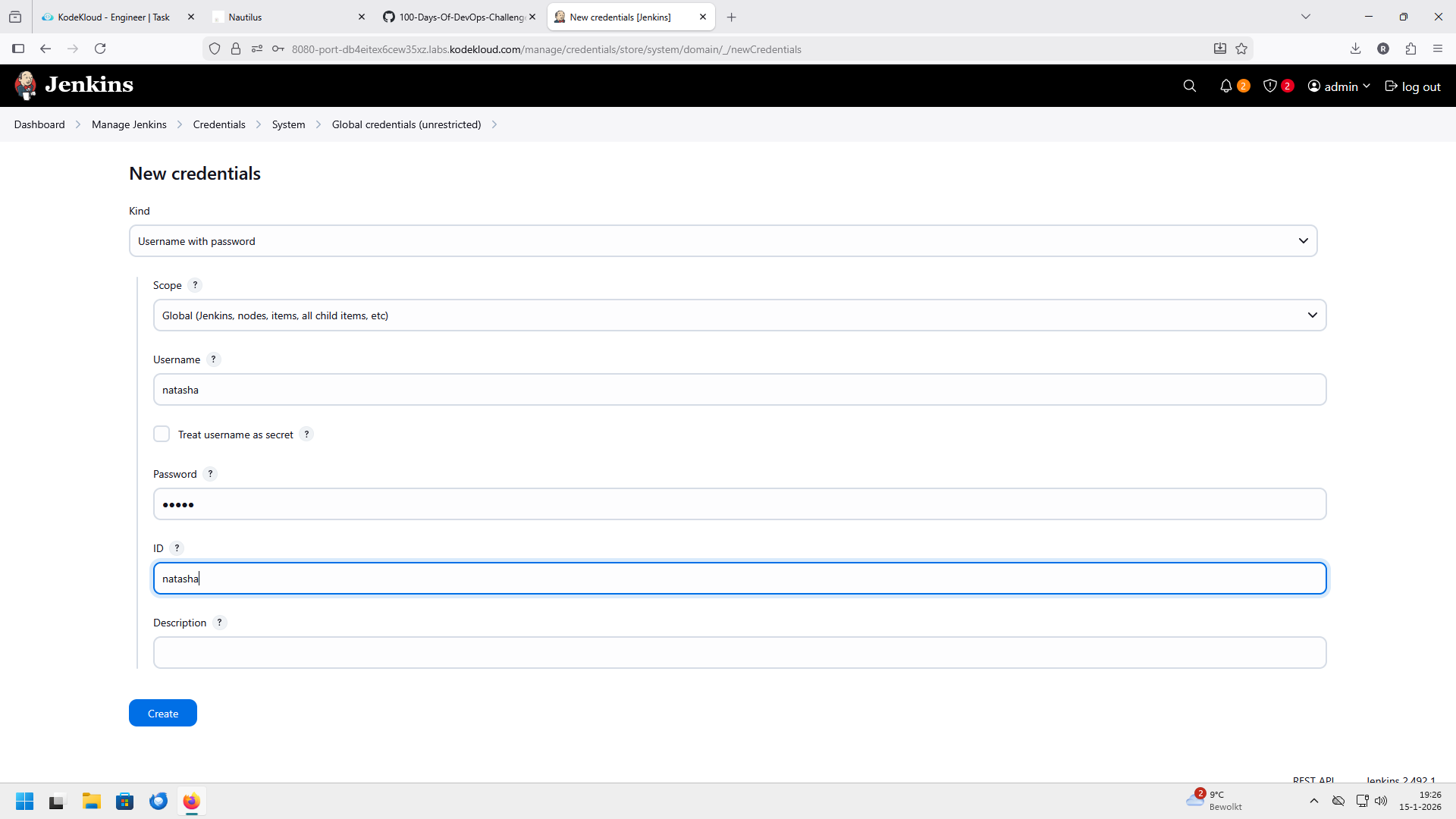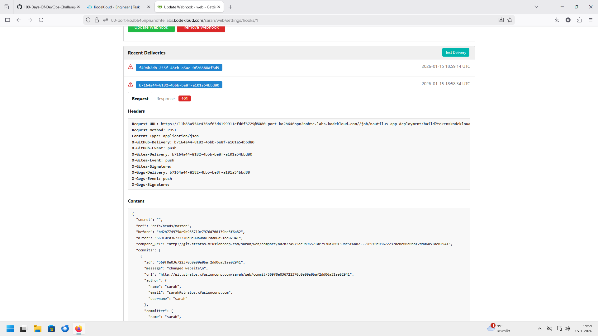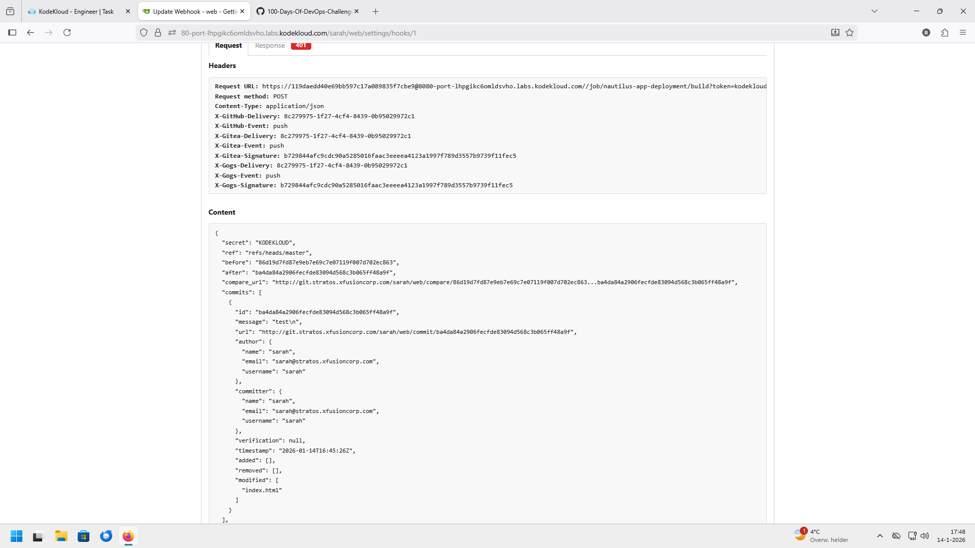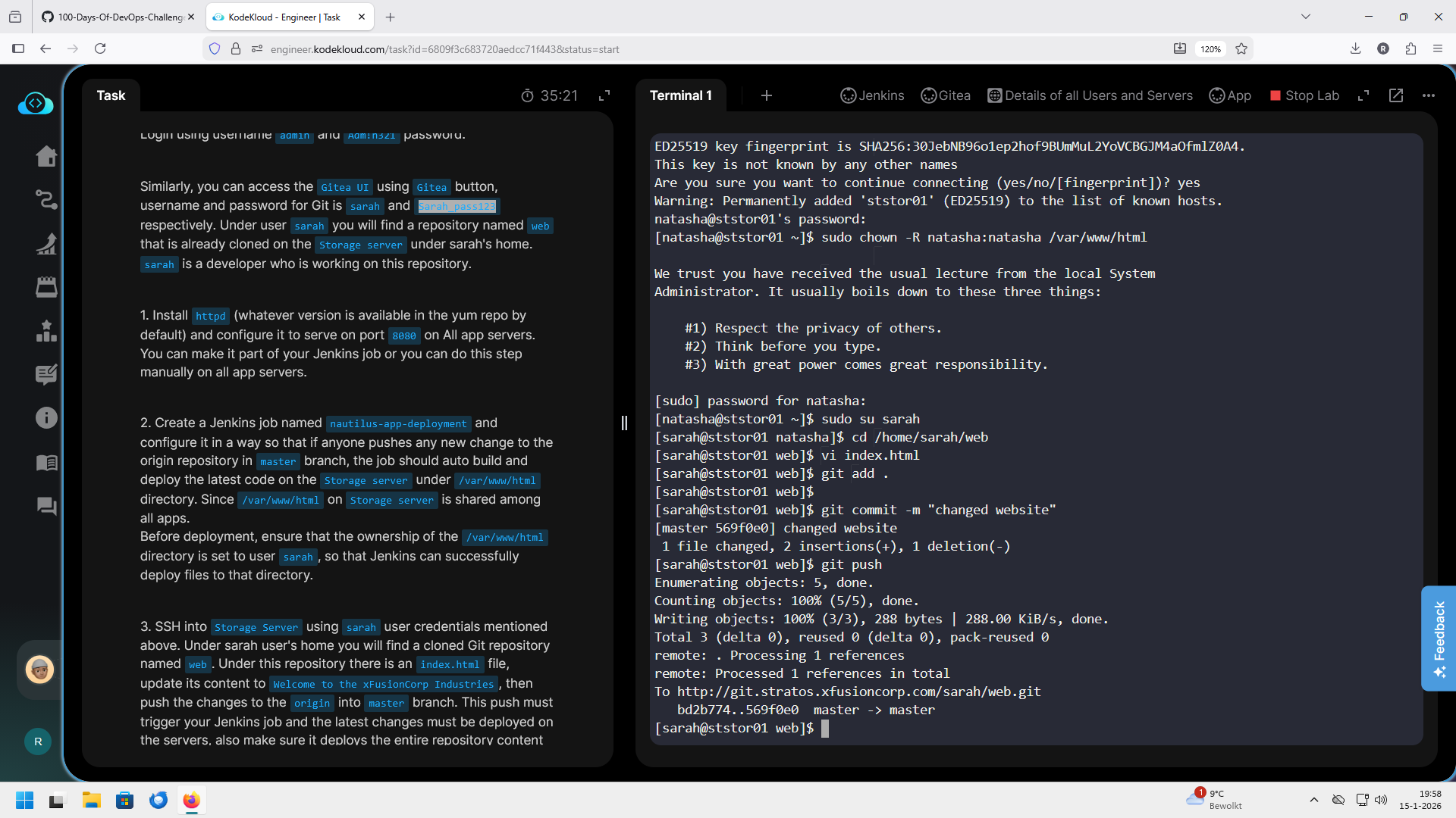 Or is it because on the jenkins on the server creds I put Natasha instead of Sarah ??