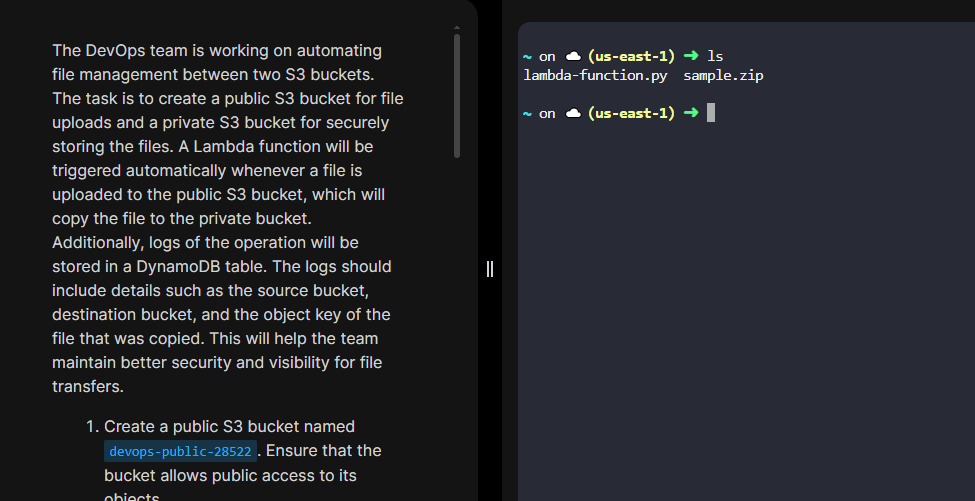 Im working on Tasknumber 46 of 100days of AWS . To test the whether Lambda function working or not i need to upload file to Public S3 Bucket but I’m not able to see sample.zip file under /root directory .