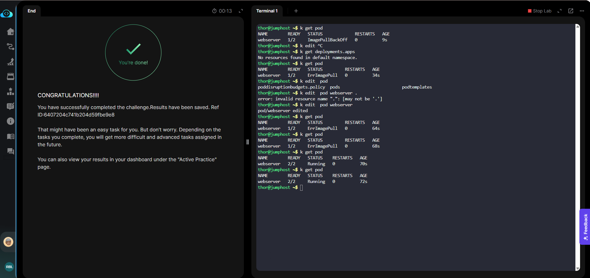 I didn’t find any issues with the task itself. We’ve set up the pod with some intentional errors and asked users to troubleshoot and fix them. You can check the pod details to identify the problem. Once it’s fixed, you’ll be able to access the app.