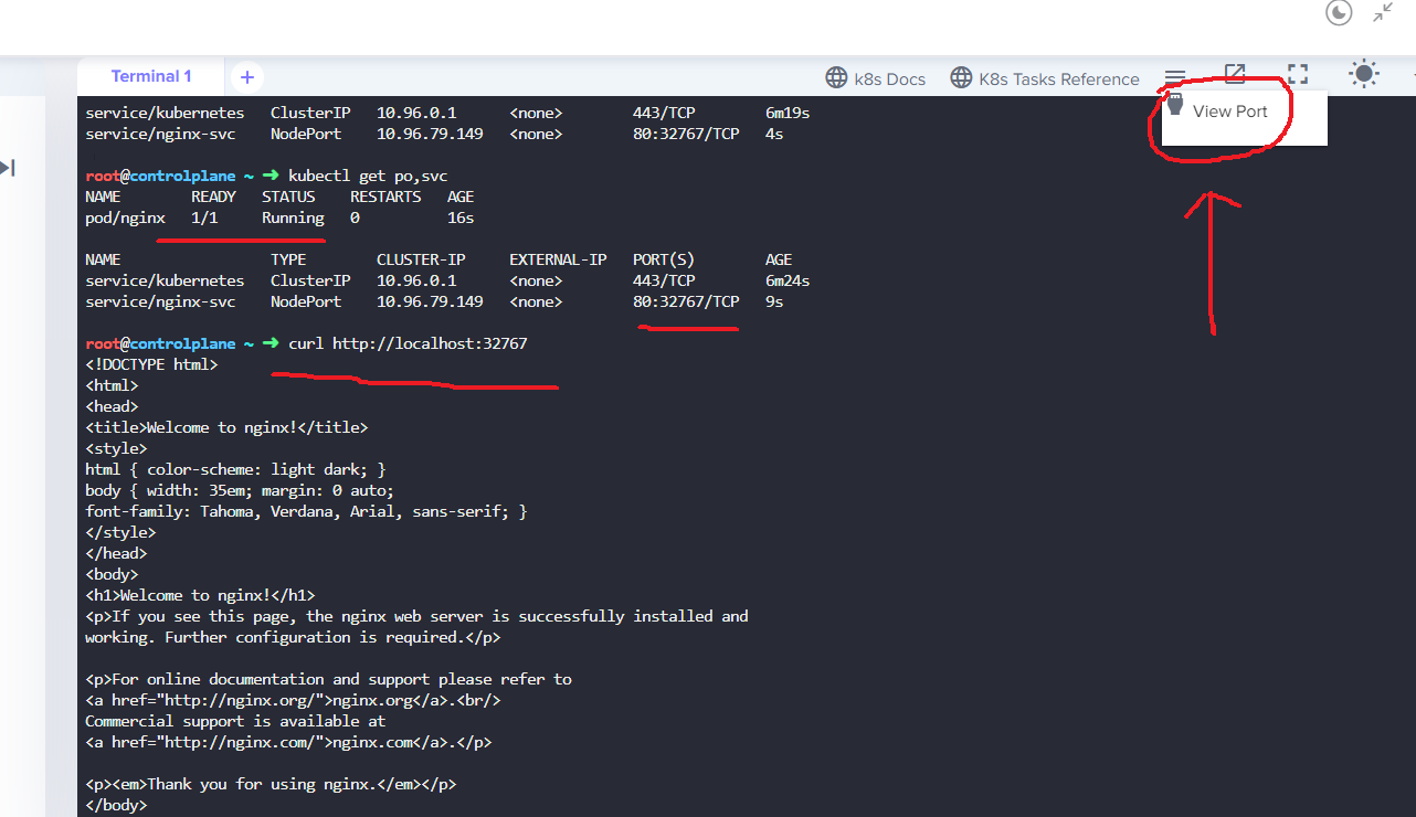 Error is browser timeout. What I am trying to do is create a NodePort service in the playground. It’s getting created , there is no issue in that. The thing is I want to access the NodePort service from outside say my laptop browser. Is there any firewall that is blocking or does playground allow that to access any random port from external.