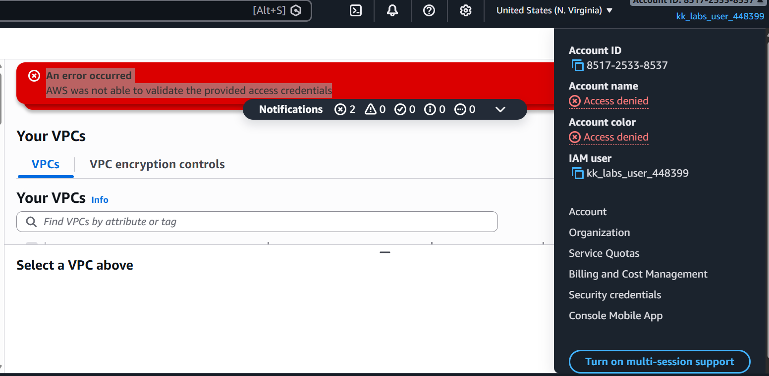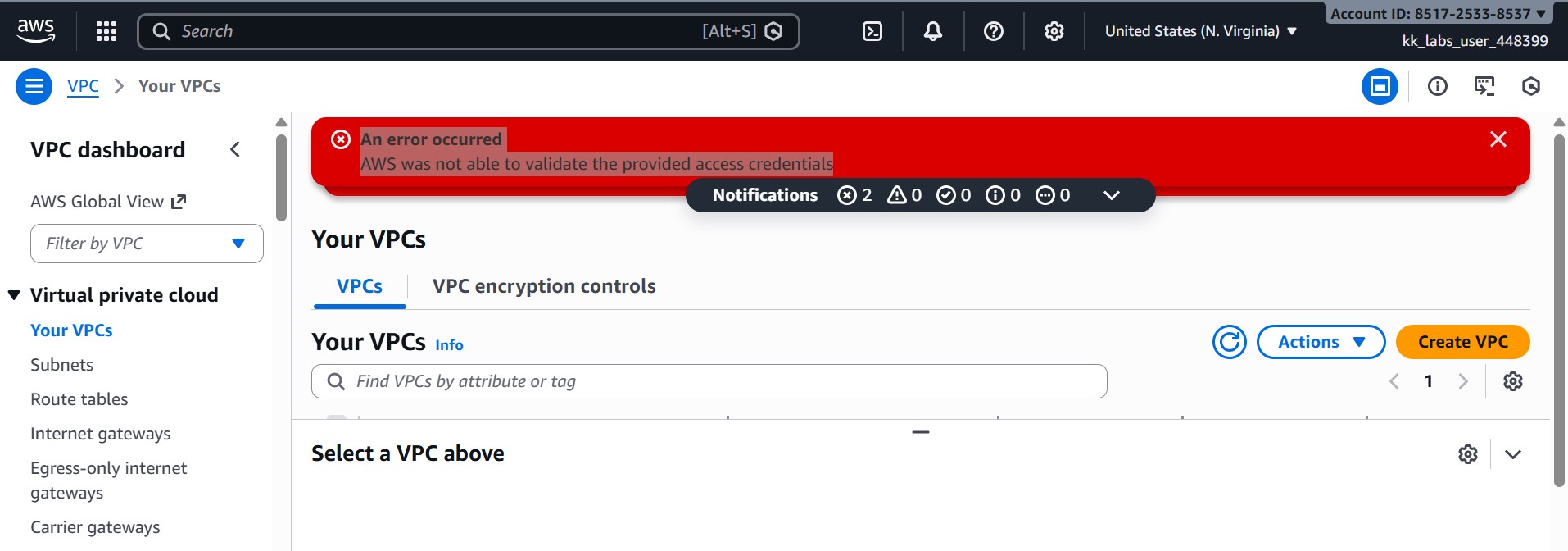 Account ID : 851725338537 IAM User : kk_labs_user_448399