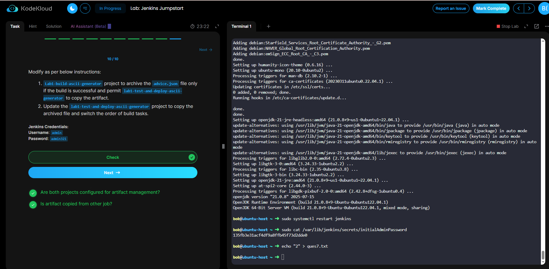 I archive and Copied the artifacts but got error in the console in the test Environment
