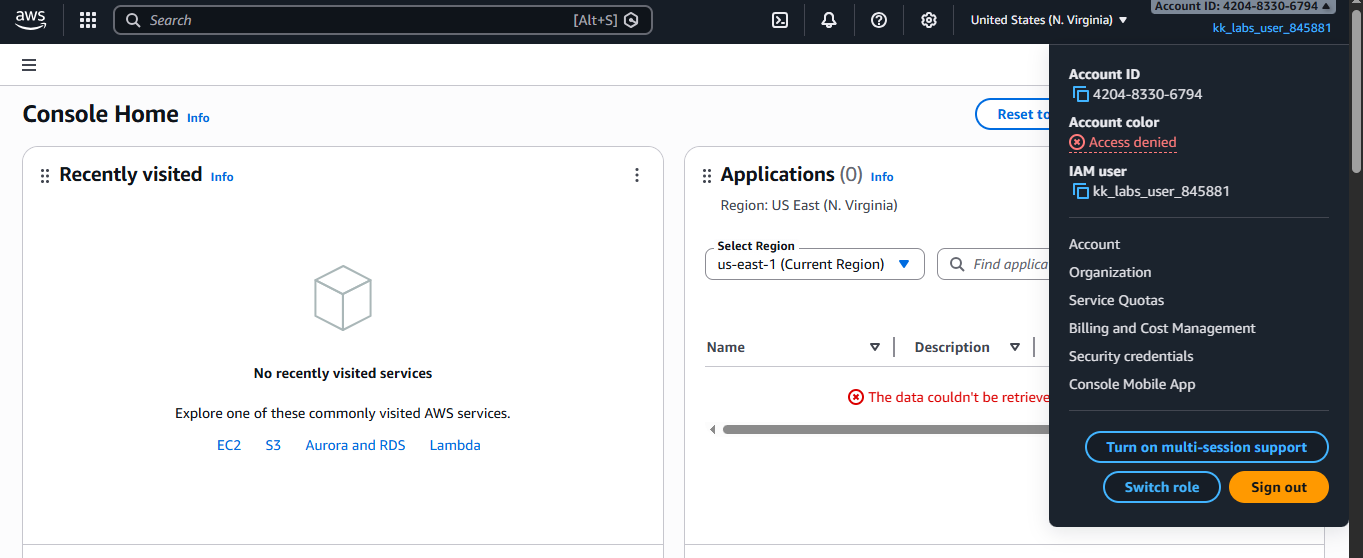 However, after logging in, the AWS Console shows Access Denied / credential validation errors. Because of this: