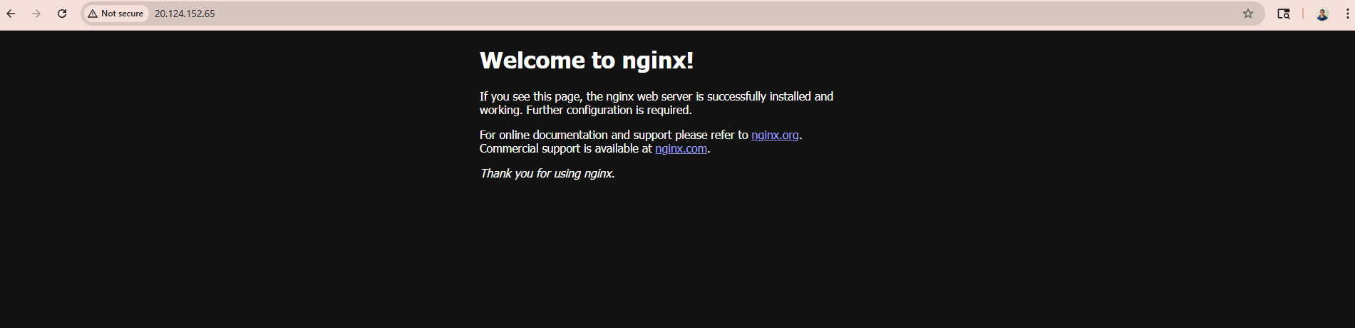- You should see the Nginx welcome page or the custom page created by the user data script