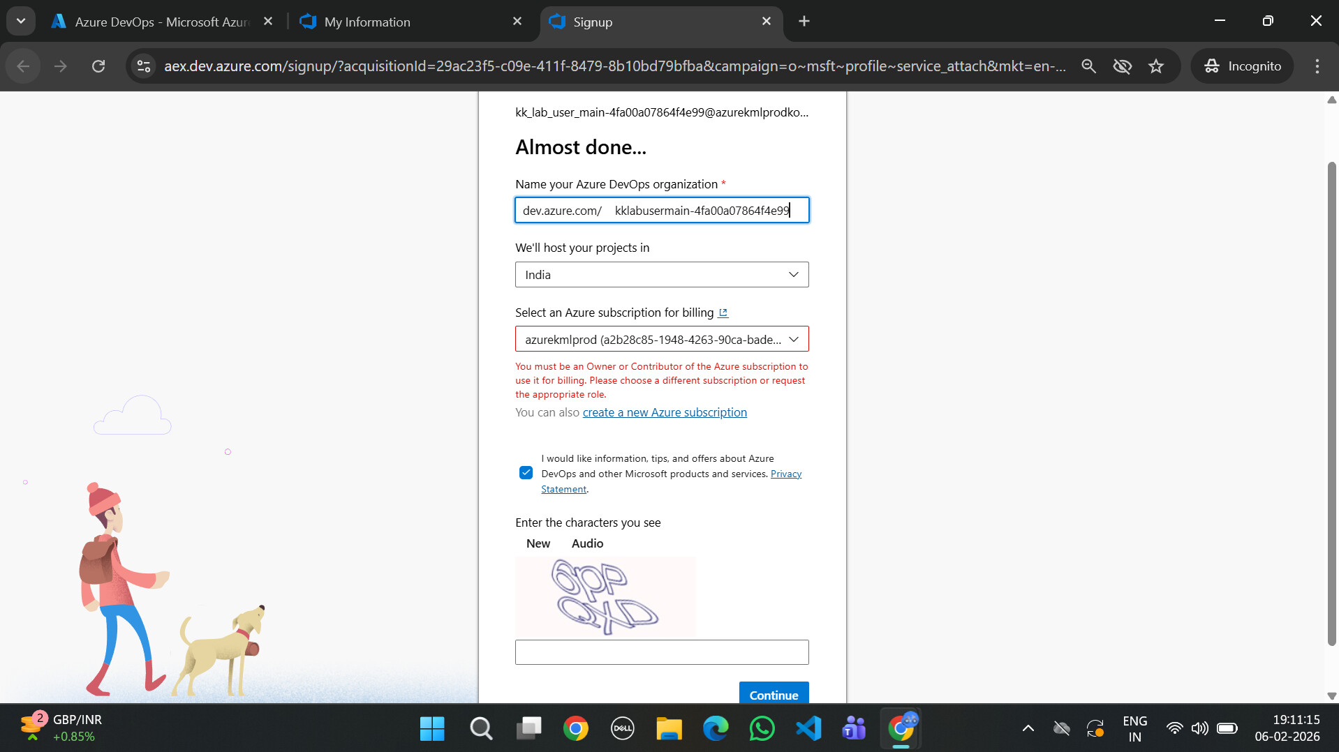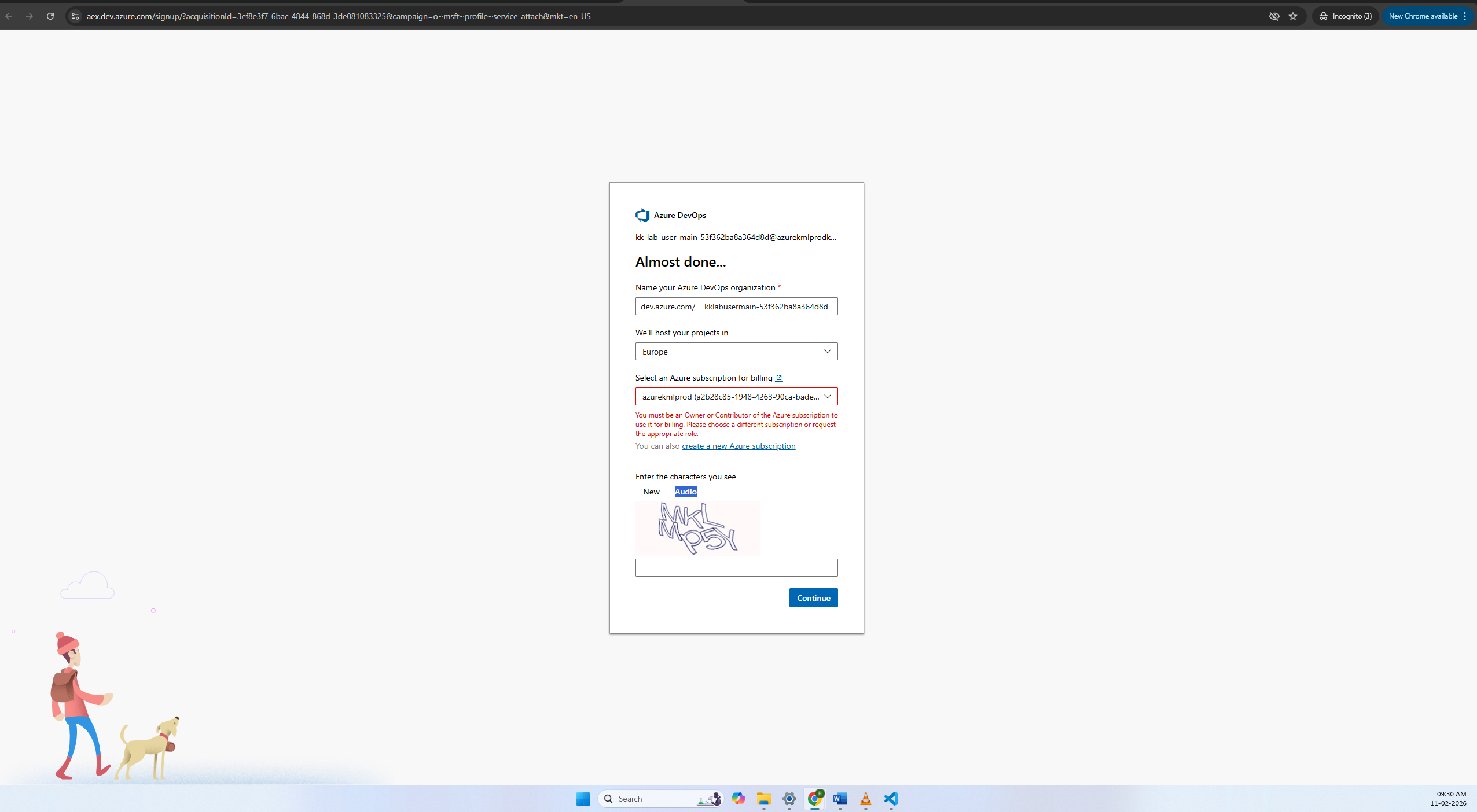 I’m still facing the same Azure DevOps subscription error despite following the suggested steps. Could you please guide me on how to resolve this issue, or let me know what additional details (error message, screenshots, subscription ID) you need from my side to troubleshoot further?