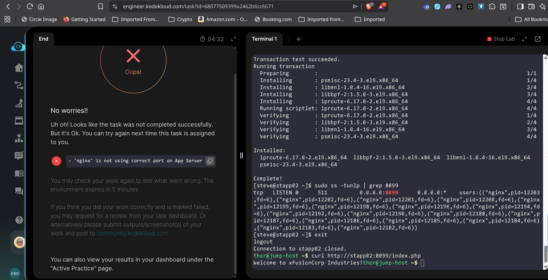 I know that this can be done, since I just did it today. I’m not sure where you’re deviating from what the grader is expecting from the info you’ve supplied here. The port seems consistent with task description and you appear to be on the right host. You should also check to make sure you’re consistent with how PHP-FPM needs to be configured, which I can’t tell from the info supplied. Not clear what you need to change at this point.