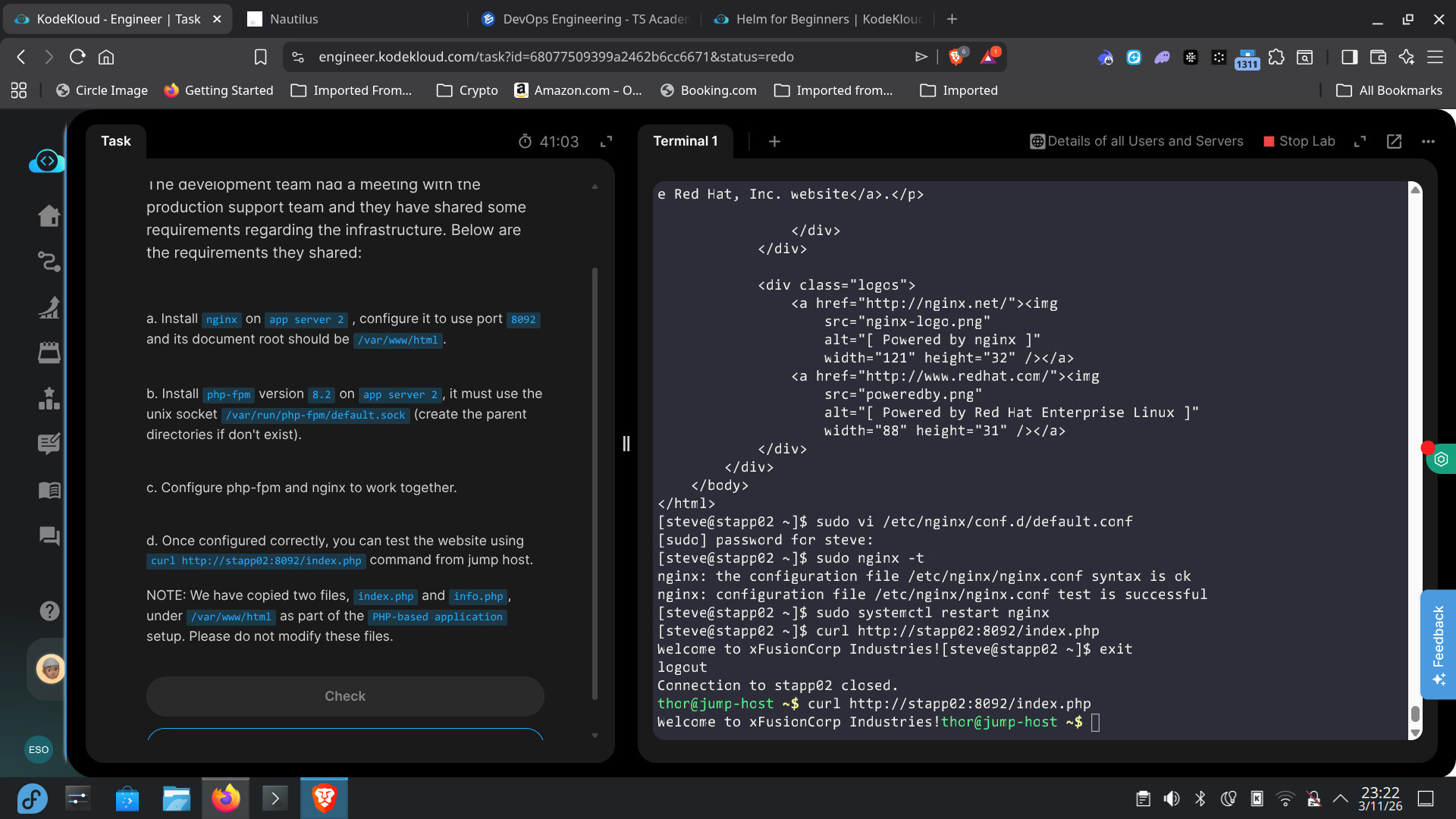 I have successfully completed the task for Day 20: Configure Nginx + PHP-FPM Using Unix Sock