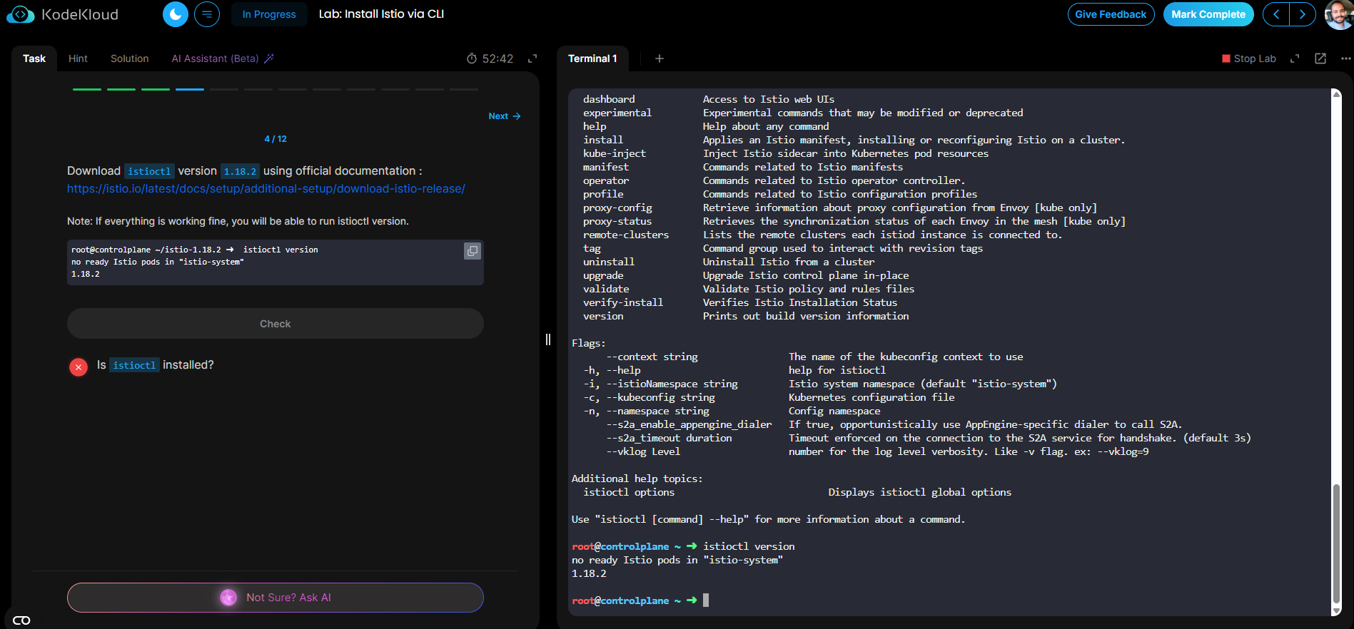 I’m learning the ICA new course on KK , when installing the istioctl ( this is the first LAB) and just to make it clear bcz i think its a bug