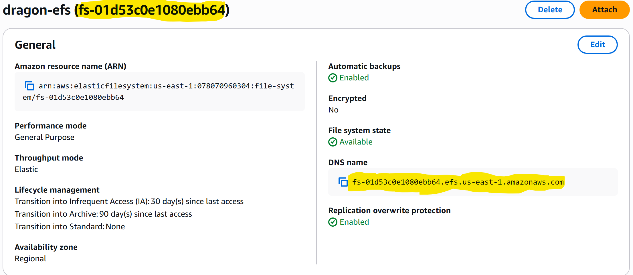1 EFS filesystem: