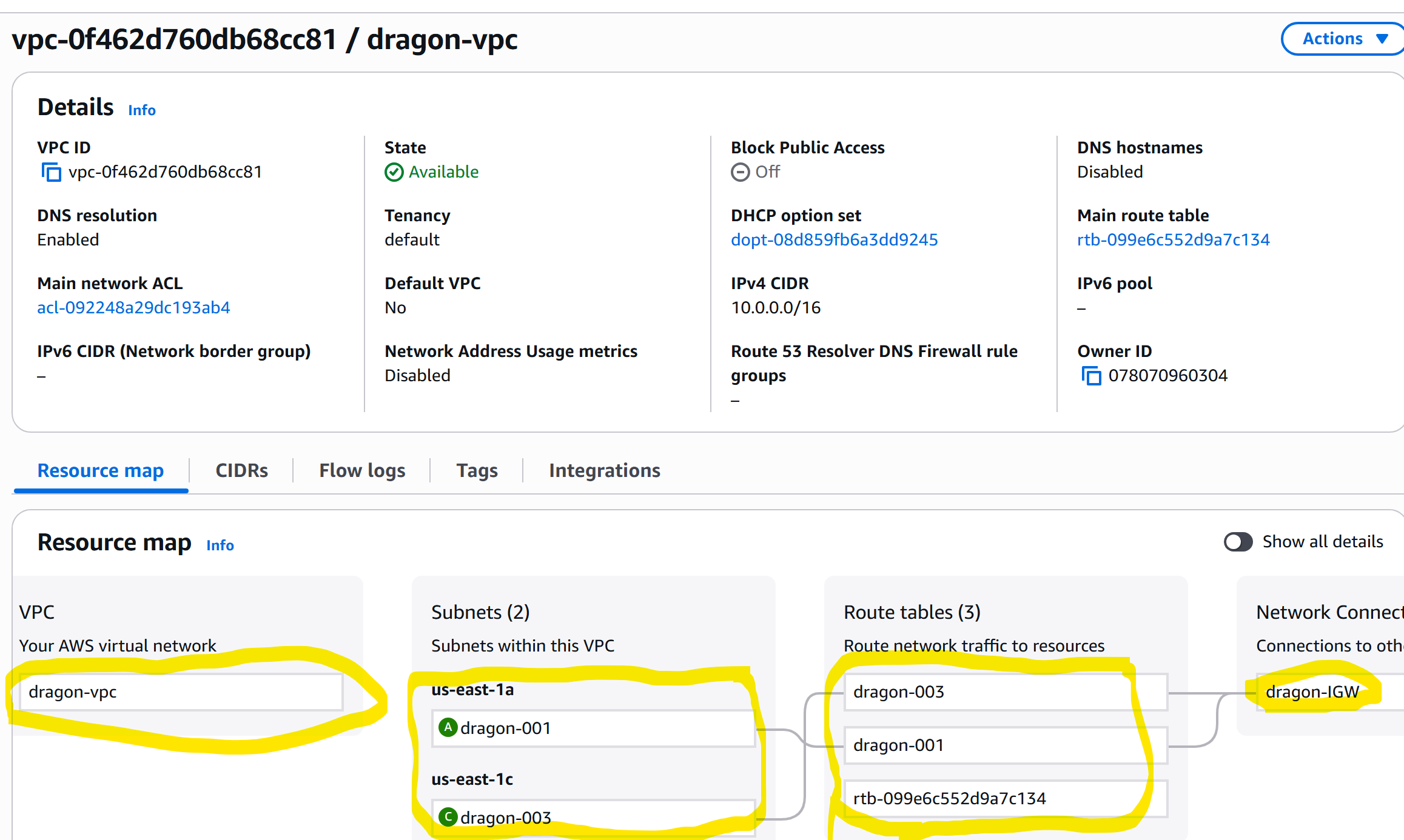 1 route table for each subnet, routing traffic to IGW below