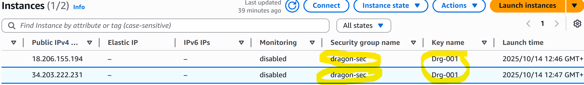 I also rebooted the instances just incase they weren’t picking up the security group properly as I made a change after launching the instances.