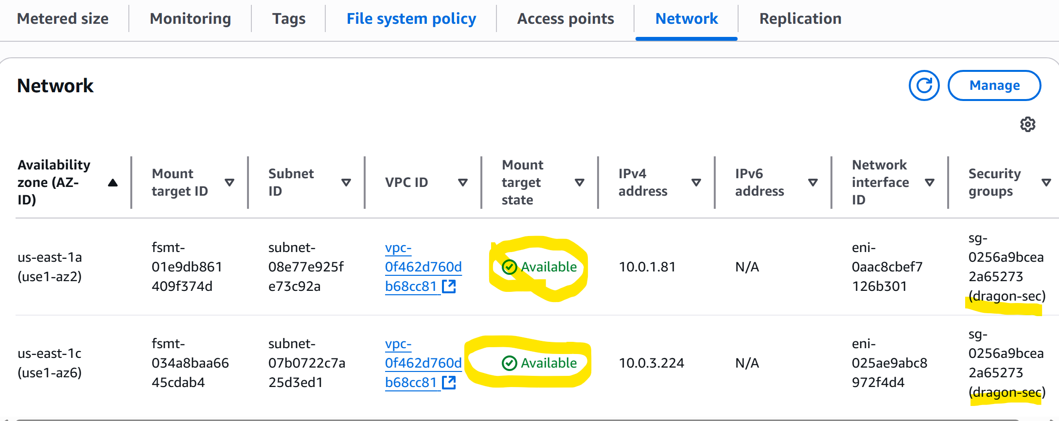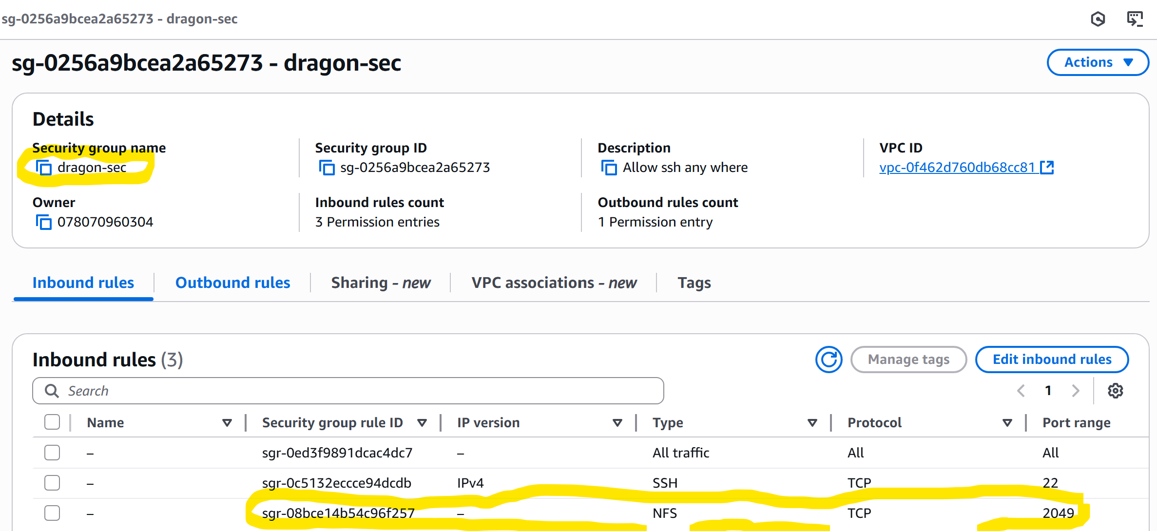 I made a slight modification from the lecture by including the NFS in the security group.