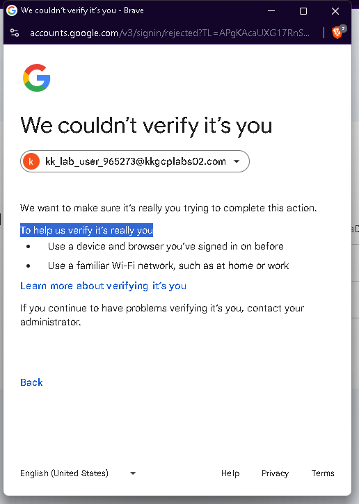 If, like most people you have a Google account and are running the lab in Chrome, try launching the playground from an incognito window to ensure there is no confusion on behalf of GCP between your personal account (which it will try to use by default) and the lab user account.