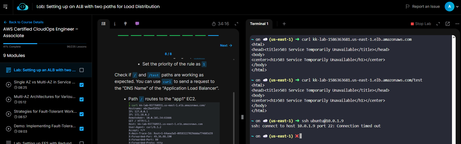 Hi everyone I am doing the following lab and I am finding issues with validating the applications, I am able to create all of the terraform and configure the ALB with requested settings, but when trying to curl I am getting bad gateway.