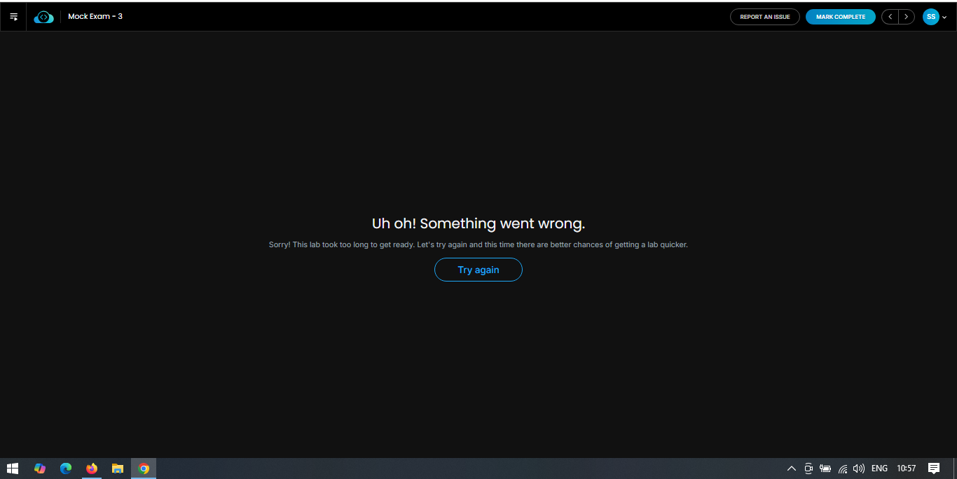Is someone looking into this? It’s been two days, the issue still presists. It is working occasionally. This is like I have to keep trying to access the lab and when this works, I have to drop all my other work to practice.