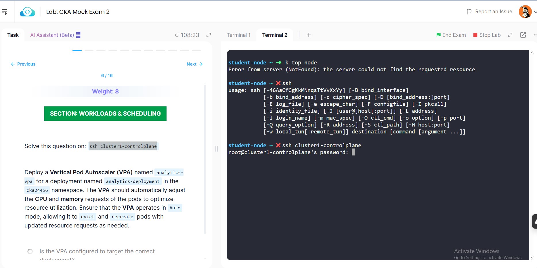 In CKA Mock Lab 2 im getting this ssh