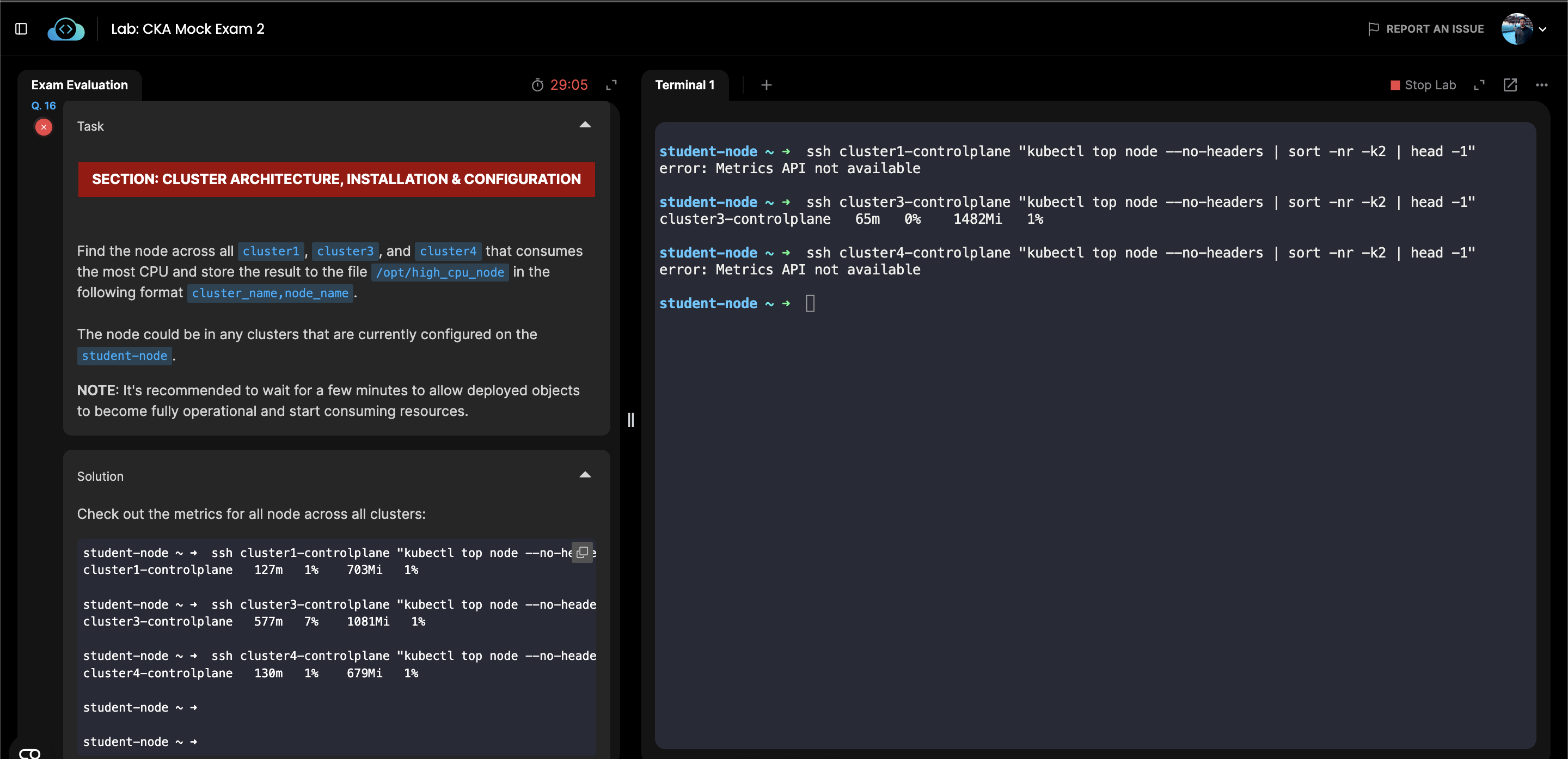 student-node ~ ➜ ssh cluster4-controlplane "kubectl top node"