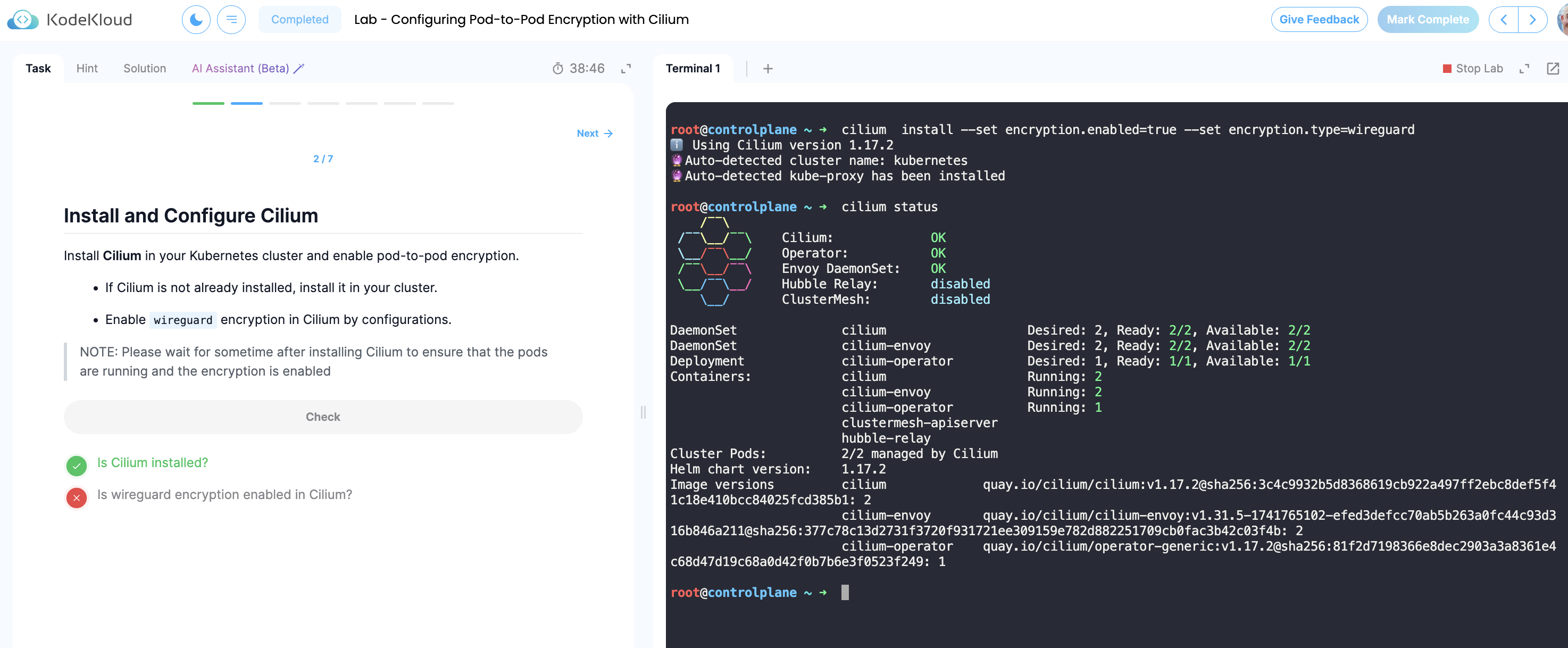 I’ve installed cilium, enabled encryption and configured wireguard but the grader fails me, probably because I installed it using the cilium command and not using helm (but it wasn’t mentioned that I should use helm to install it)