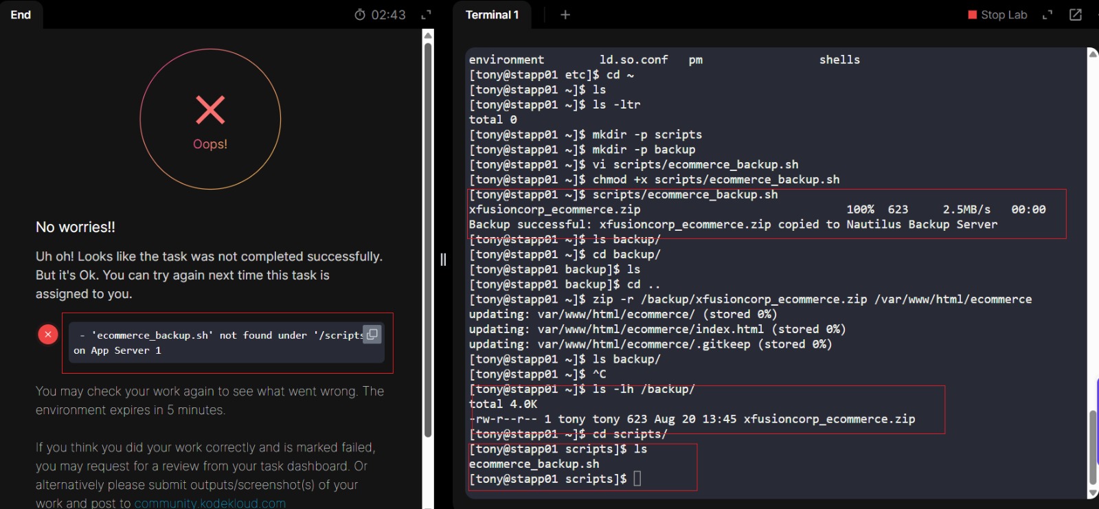 The script basically should archive the directory available on one Server and copy the archive to the Backup server.