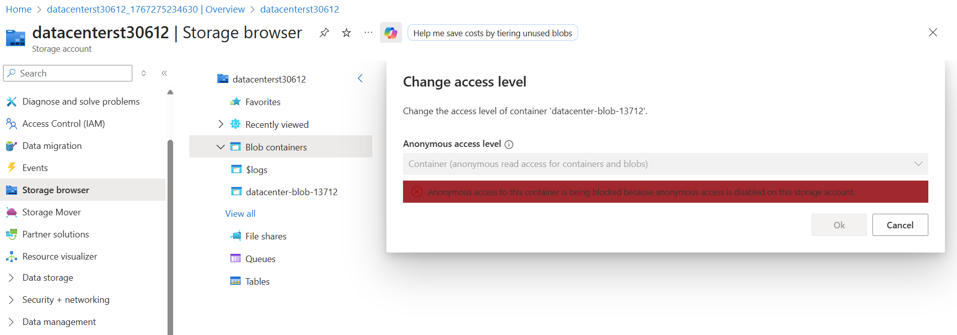 When I try to change the blob container access type to public getting the above error can any one help me.
