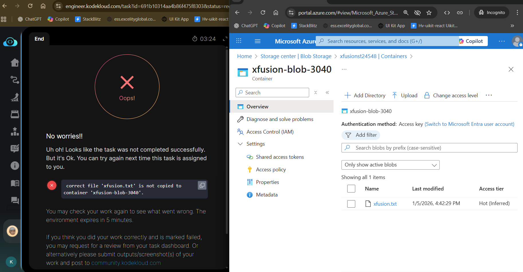 I tried 4 days but every time I am getting this error I create a file and copied to blob storage isn’t correct ? I created a folder temp and copied then also it failed.