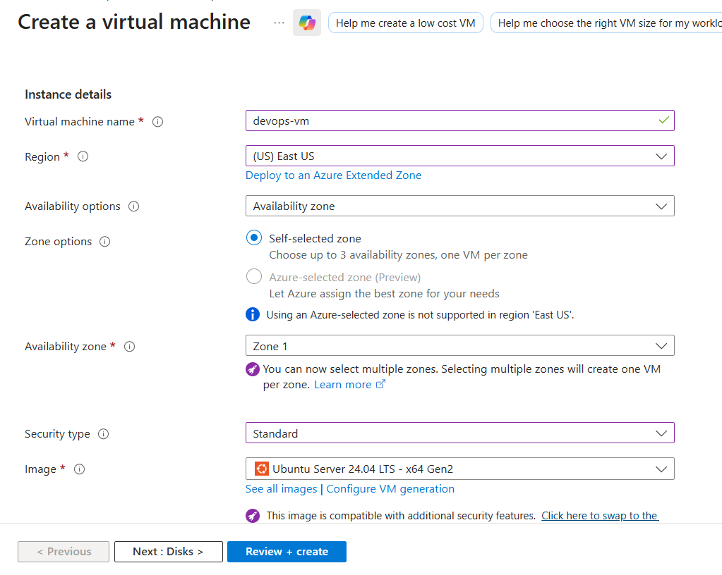 i am unable to create a vm as specified in task given in day 2 azure cloud