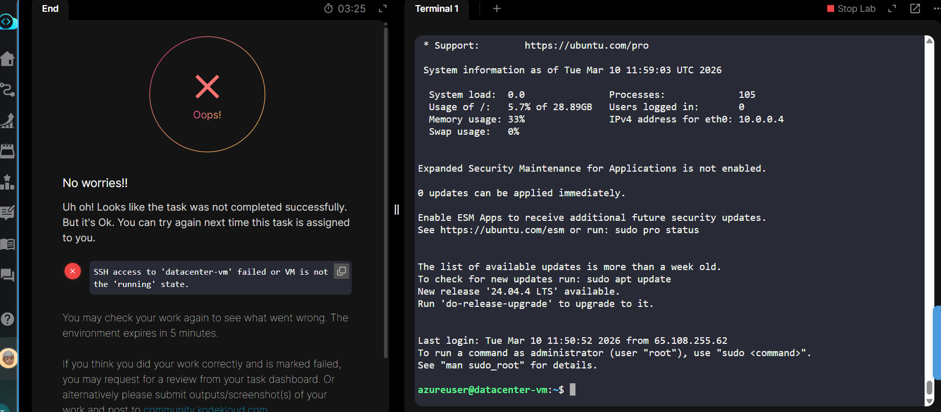 Good afternoon, please help me solve this problem. I have been trying to complete this Azure task for four days now. I have done everything as required, but I am getting this error. The screenshot is attached. Thank you in advance.