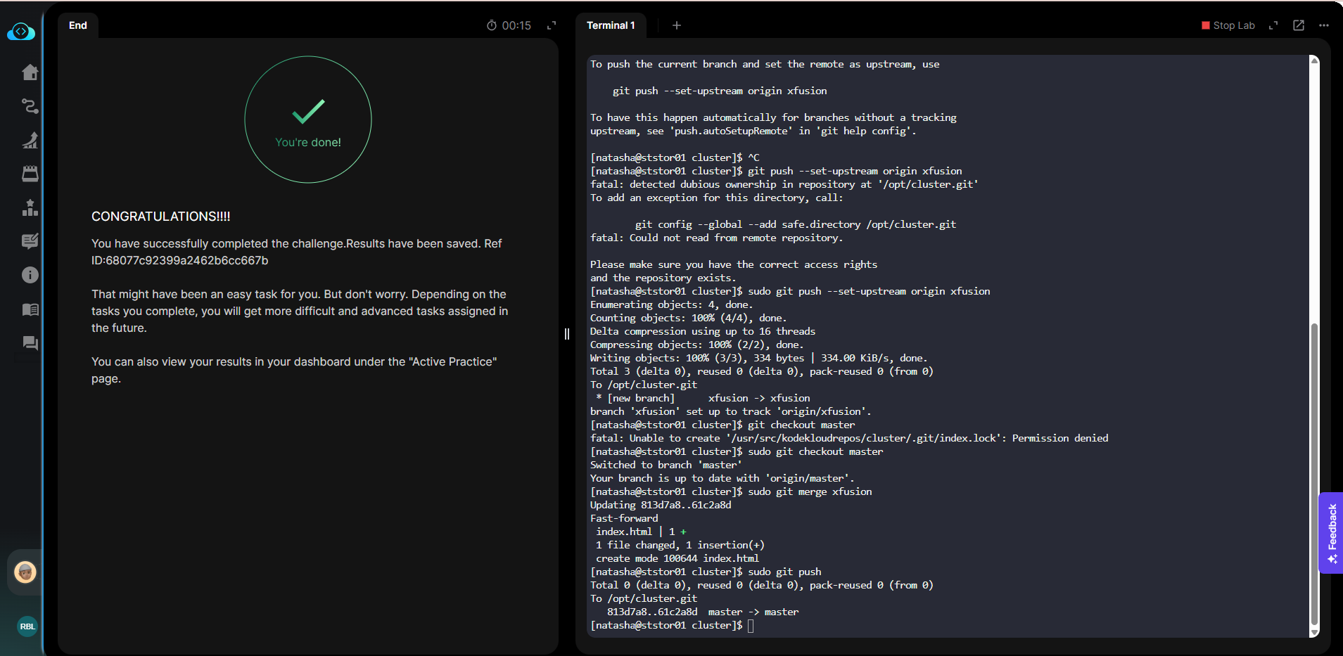 It’s working properly on my end. Please make sure that after committing and merging to master, you push both the master branch and the xfusion branch (in my case) to the origin.
