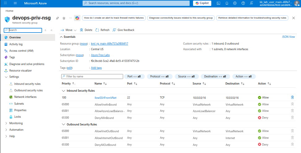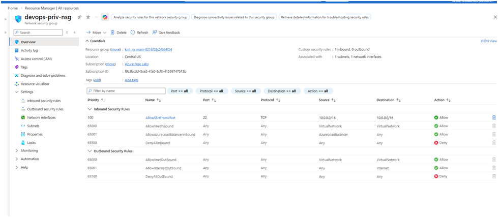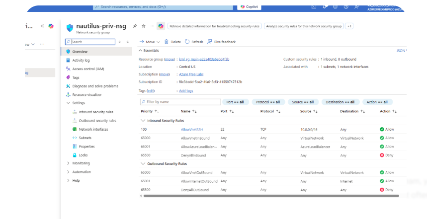 NSG ‘nautilus-priv-nsg’ does not allow access from the VNet’s CIDR block ‘10.0.0.0/16’