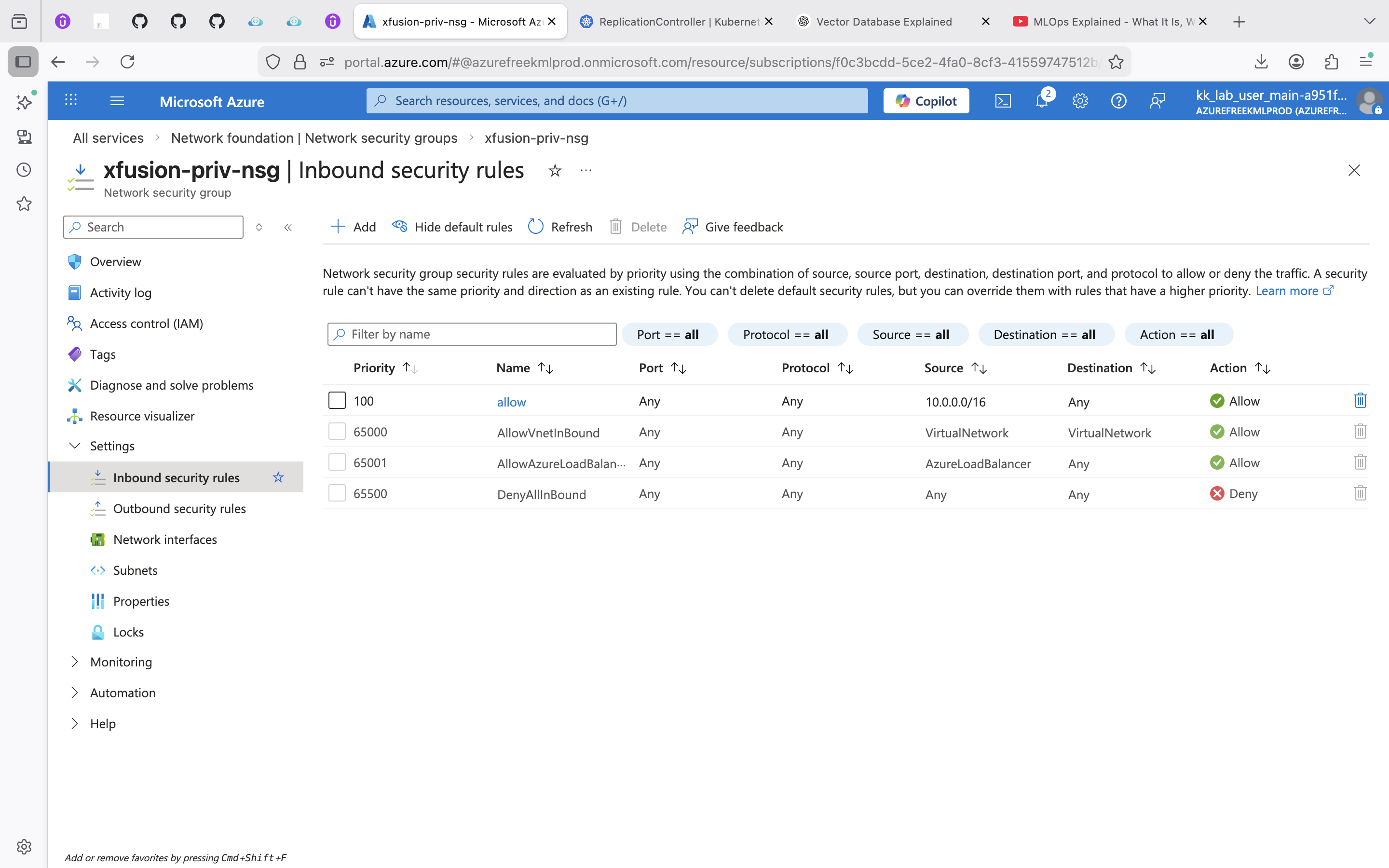 Your NSG allows ANY port as Destination. You need to set the NSG rules for the VM allow SSH access only from within the VNet’s CIDR block. You need to set the destination as port 22.