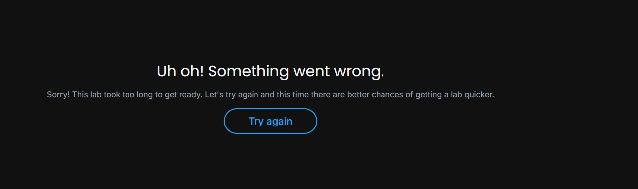 Sorry! This lab took too long to get ready. Let’s try again and this time there are better chances of getting a lab quicker.