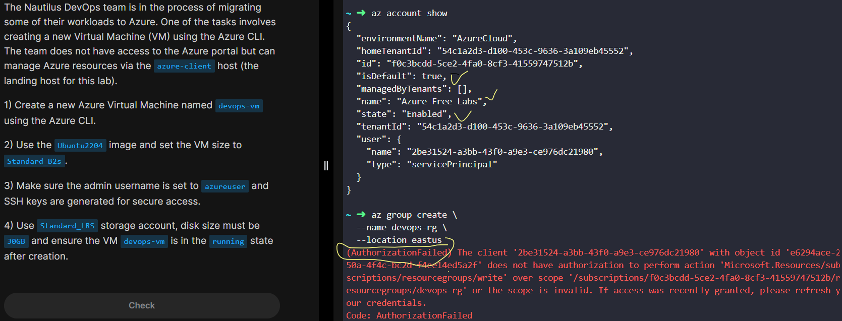 Check the resource group name using az group list -o table command and then use that resource-group to create the VM.