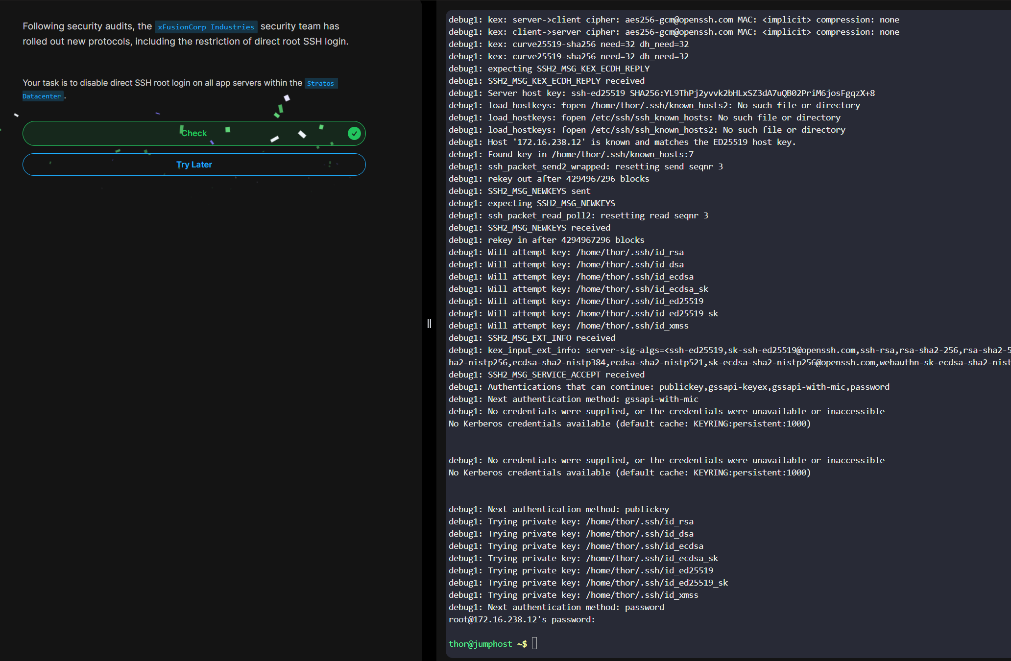 debug1: Host ‘172.16.238.10’ is known and matches the ED25519 host key.