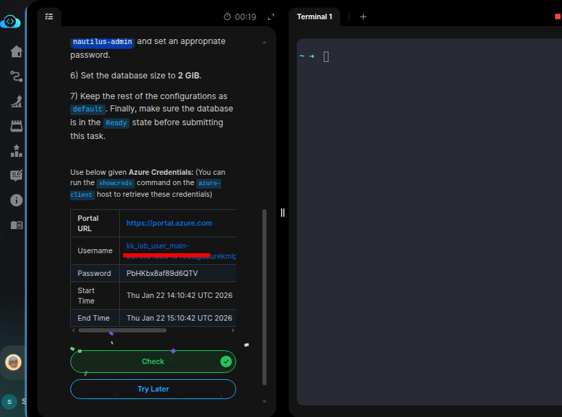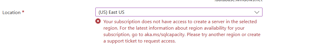 please check this issue in this lab. i have select east us regain is not permitted to create db.