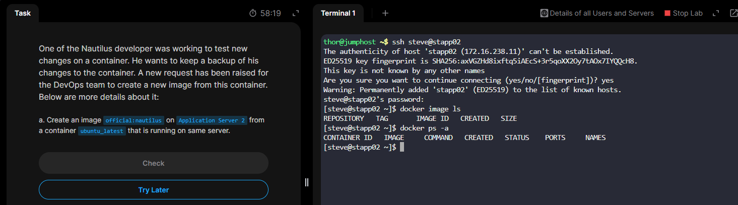 a. Create an image beta:nautilus on Application Server 2 from a container ubuntu_latest that is running on same server.