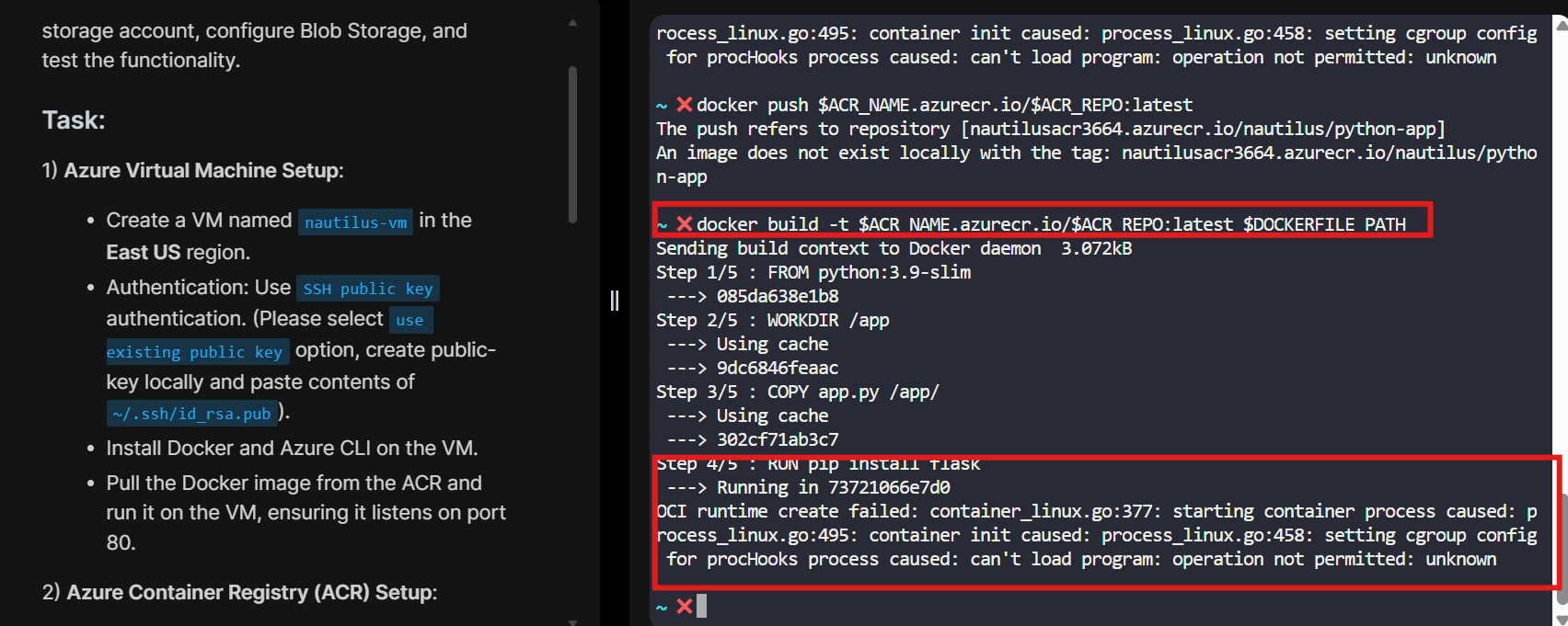 While performing the lab for azure day 48 I’m facing an issue that I’m not able to build the image based on the provided docker file on the azure client.