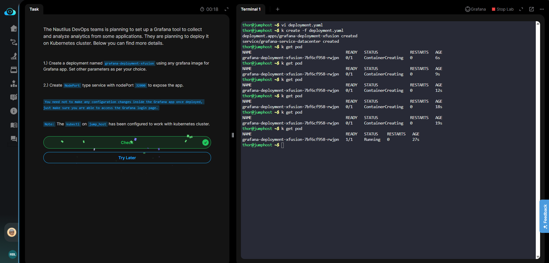 The screenshot shows the task was done correctly as the deployment was added as mentioned however the task failed. please validate and help me complete the task ( mark it as “complete” from your end)