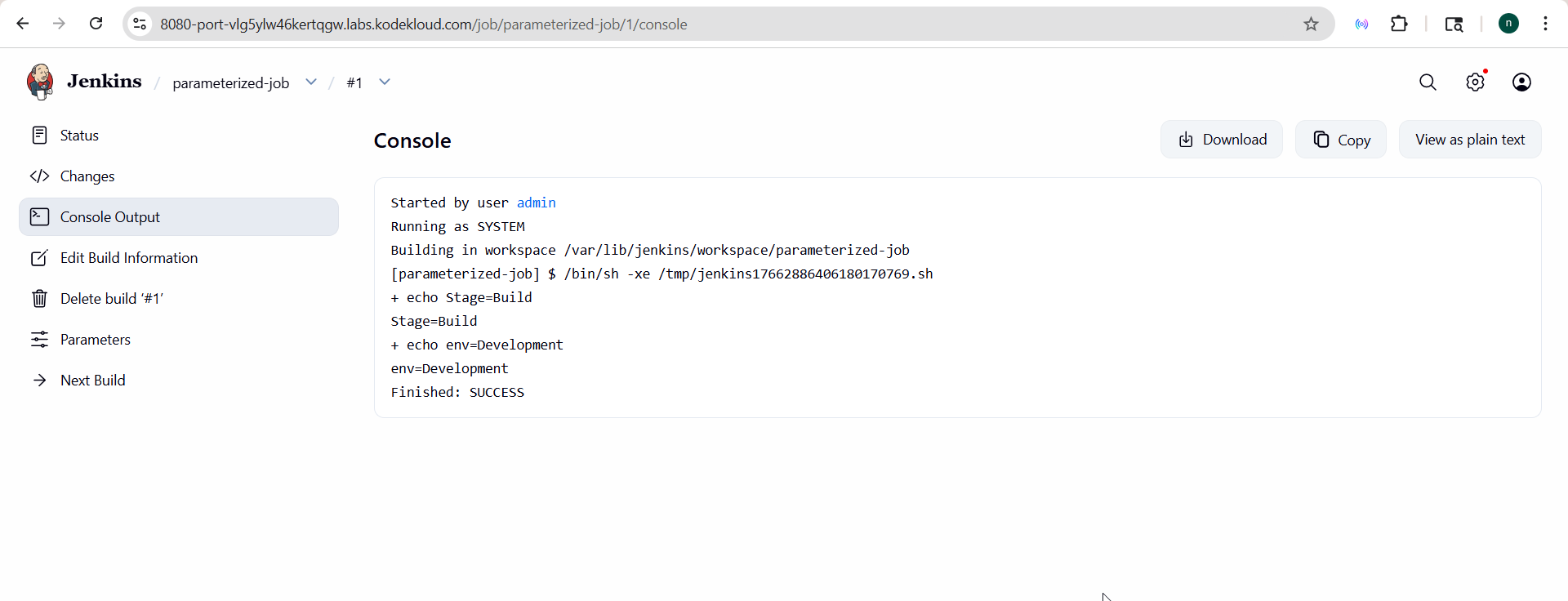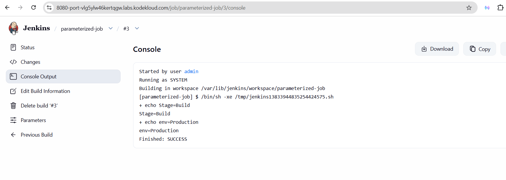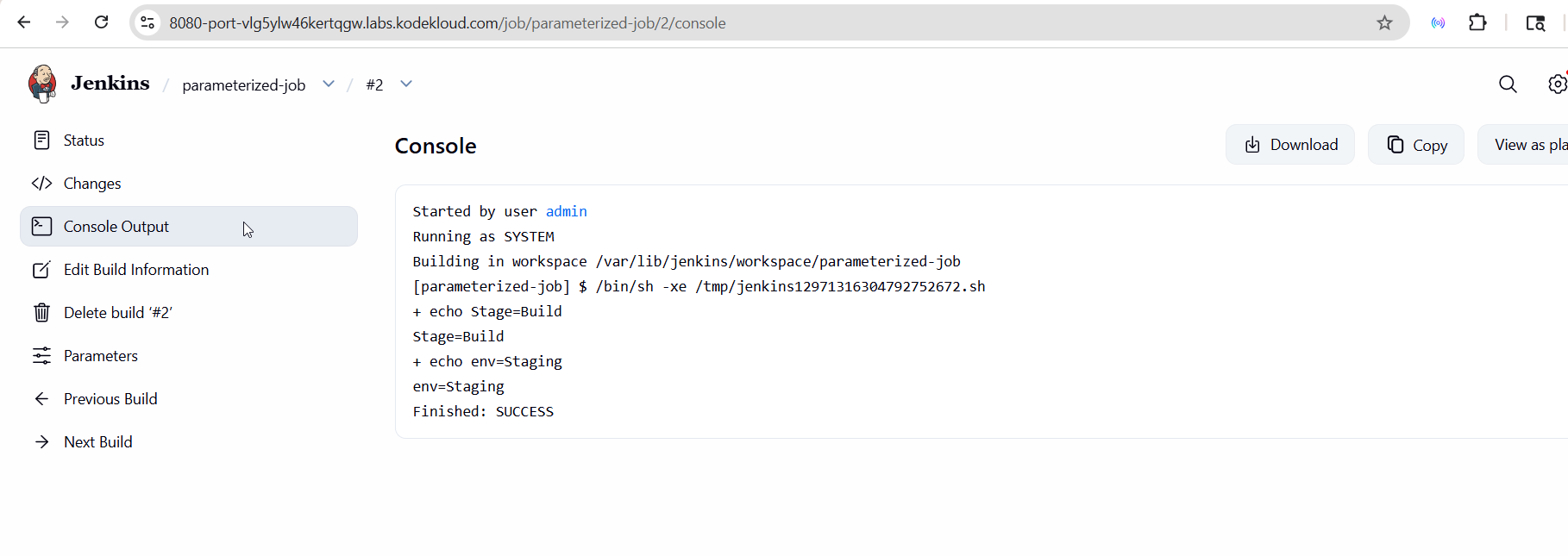 job ‘parameterized-job’ is not built with env value ‘Staging’ or build failed