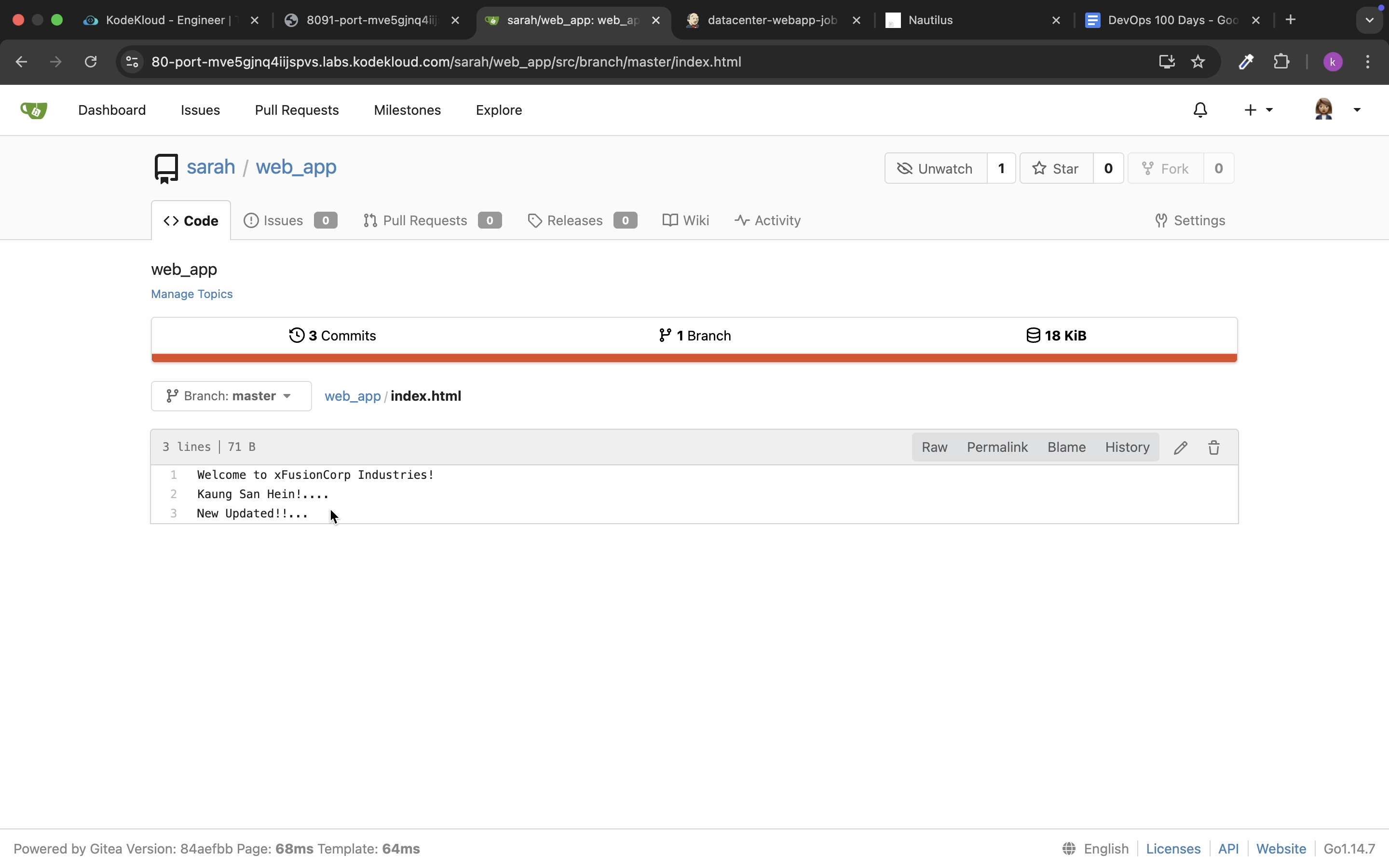 - seems like jenkins job is not configured correctly to deploy latest code from git repository!