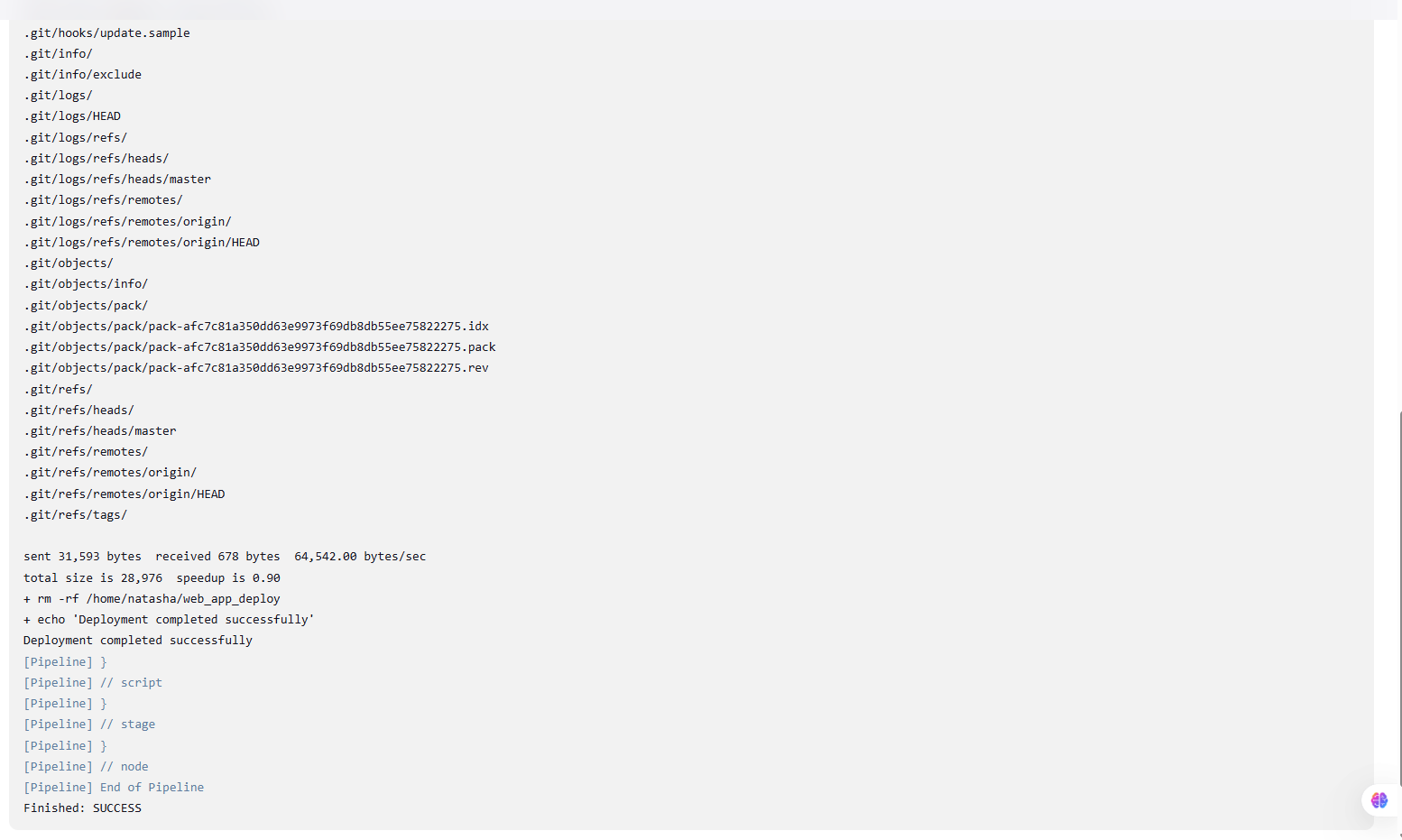 Cloning into ‘/home/natasha/web_app_deploy’… - rsync -av --delete --exclude=workspace /home/natasha/web_app_deploy/ /var/www/html/